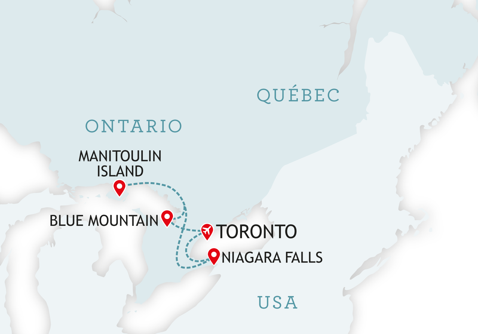 Time to say goodbye to the mountains and take the trip back to Toronto for your flight home.