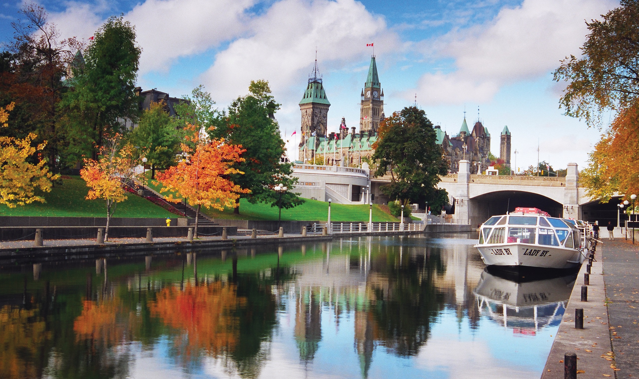 Drive towards Ottawa, situated on the Rideau Canal. This beautiful capital is bursting with culture and history for you to explore.