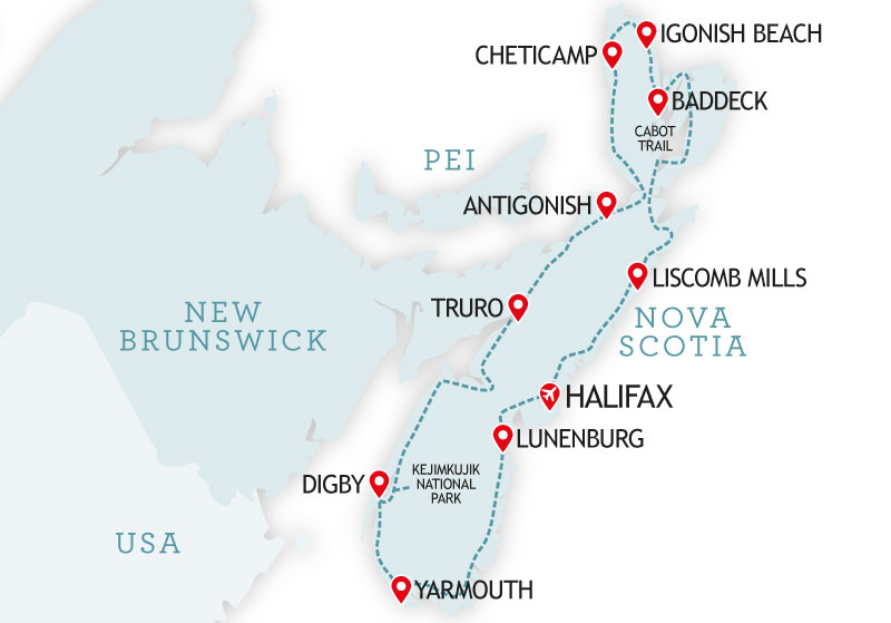 This tour is perfect to explore all the wonders Nova Scotia has to offer! Our suggested Itinerary takes you all along the coastline from Halifax to the Western Shore through the Lighthouse Route and the Bay of Fundy and all the Way to Cape Breton Highlands and their famous Cabot Trail. You have the freedom to go at your own path and enjoy as much seafood as you wish on the way!