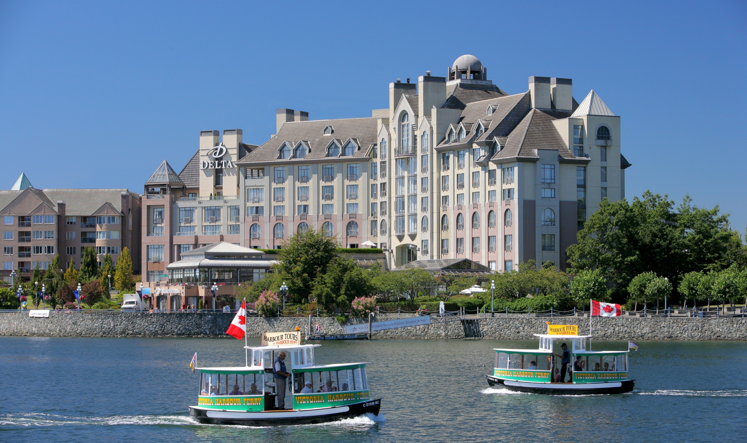 The Delta Hotels by Marriott Victoria Ocean Pointe Resort is a luxurious hotel with a beautiful location on the inner harbour, just a short walk across the bridge to downtown Victoria.