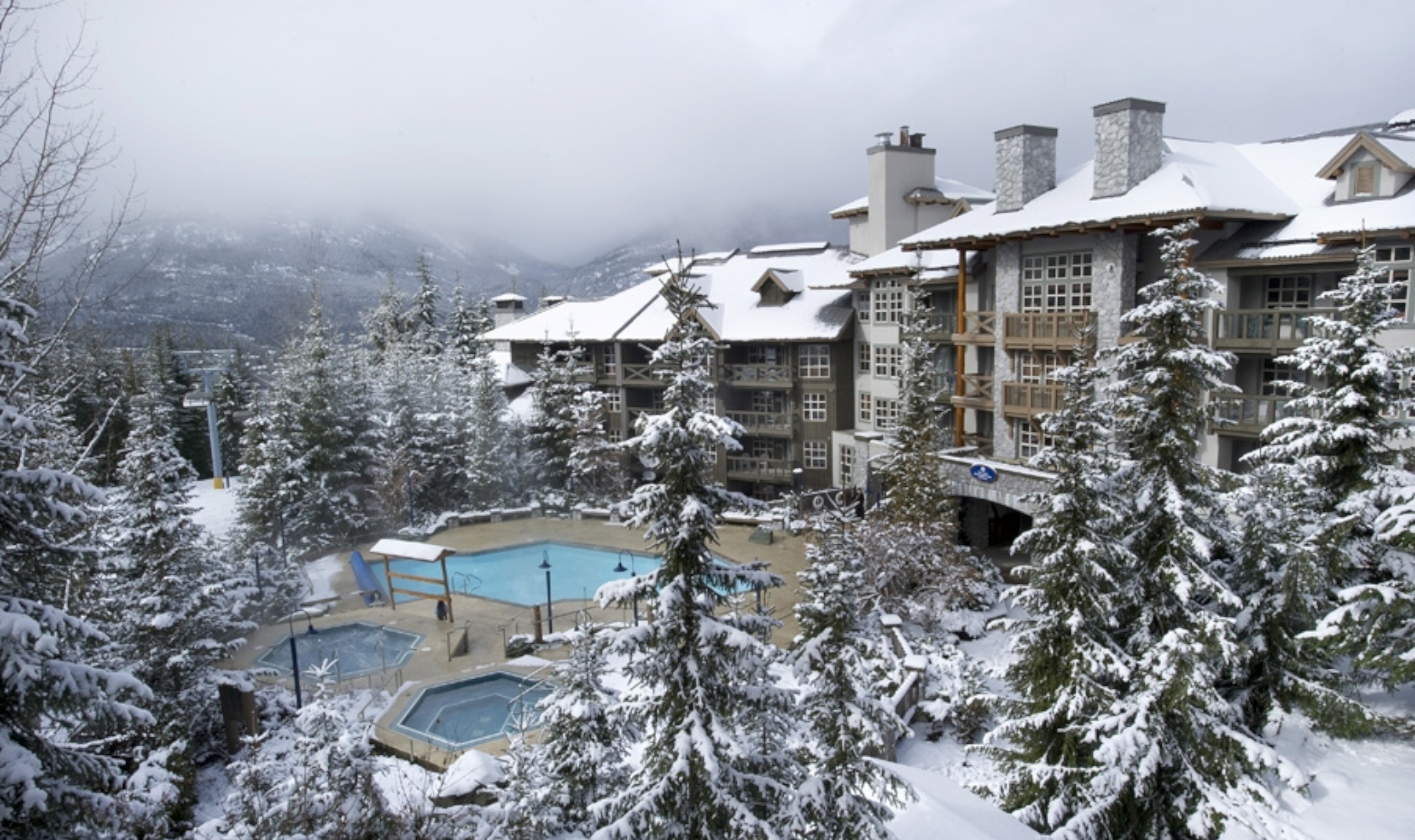 Located on the lower incline of Blackcomb Mountain, this spectacular lodge-style hotel is just a short drive from Whistler. Spacious and neutrally-decorated with chunky wooden furnishings, giving them a lovely homely feel. Suites have full kitchens and balconies to relax on. A delicious daily buffet breakfast is also included.