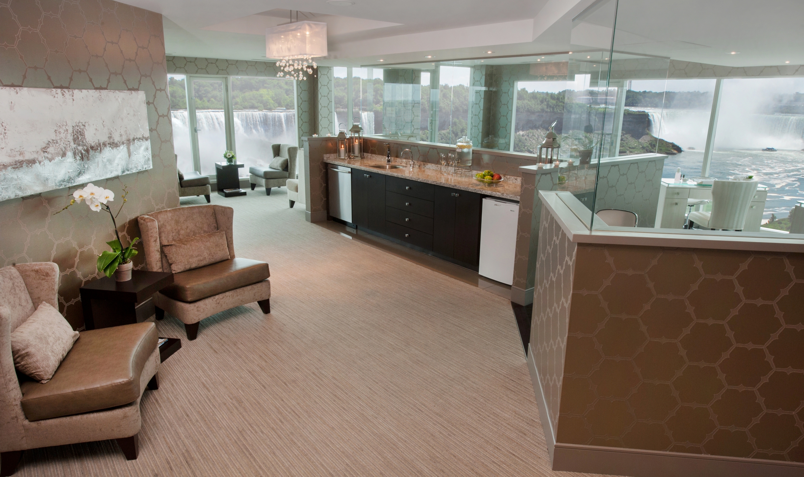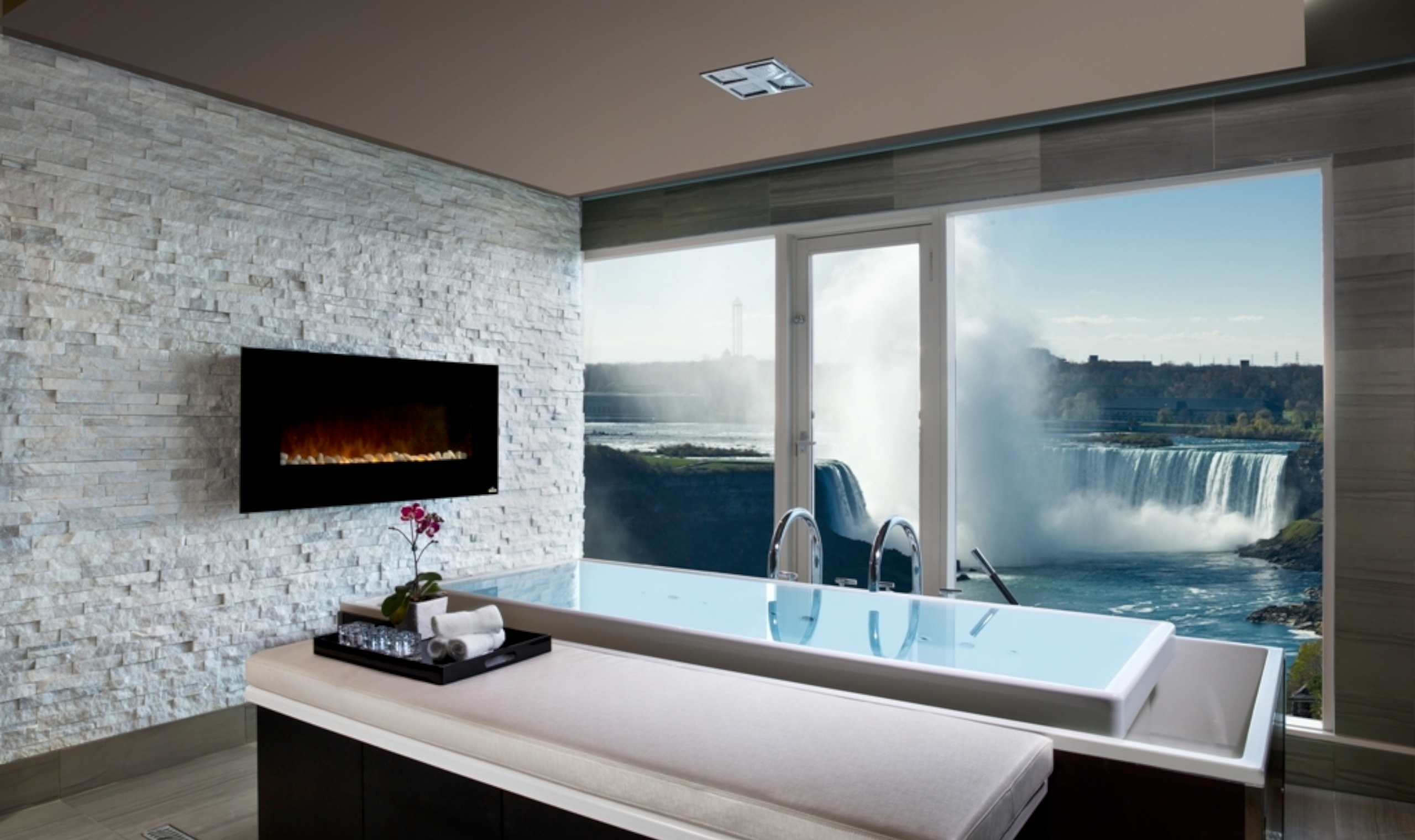 The guest rooms are luxurious and elegantly decorated with many having a view of the Falls. Upgrade to a Fallsview room and your spectacular vista is framed by floor-to-ceiling windows.
