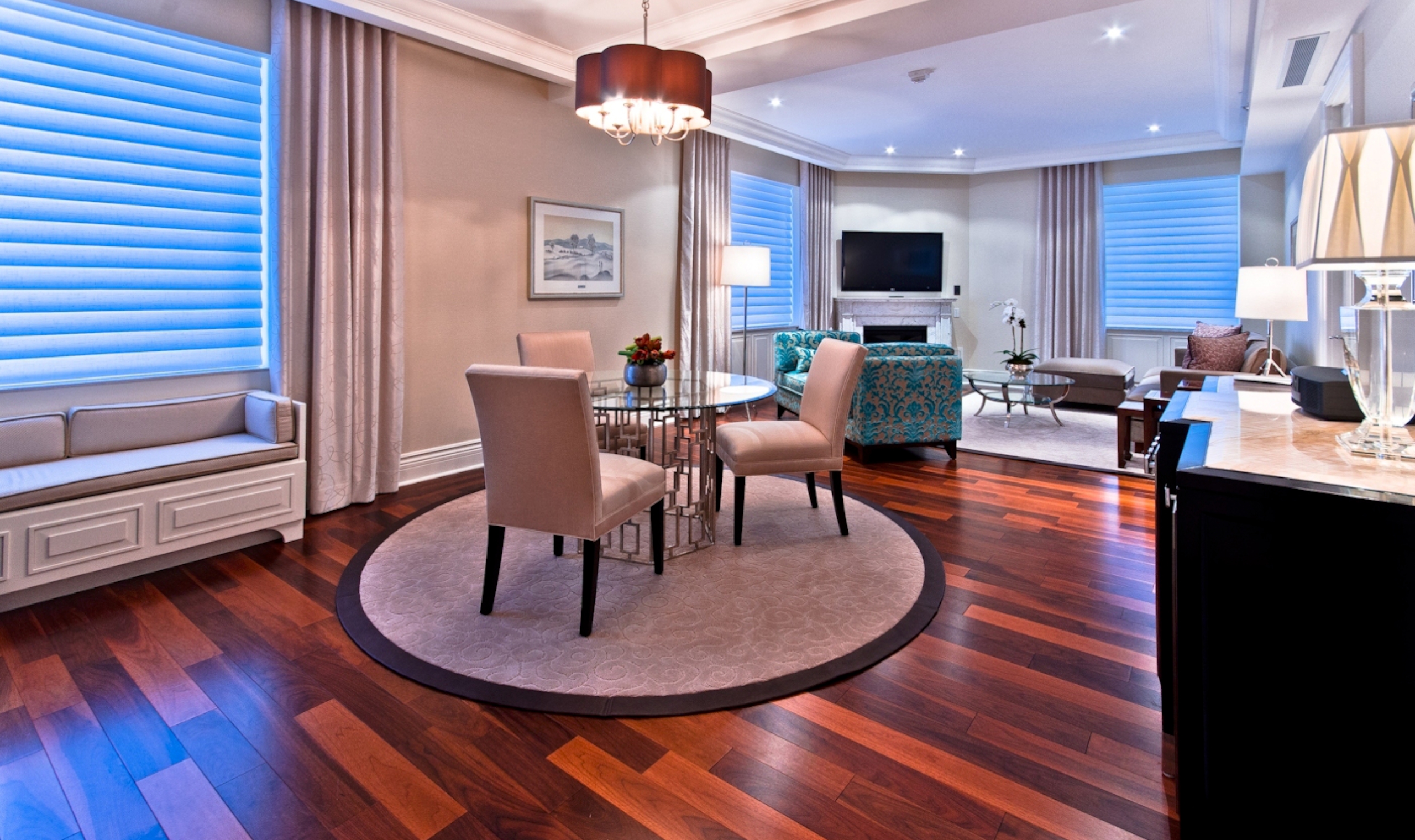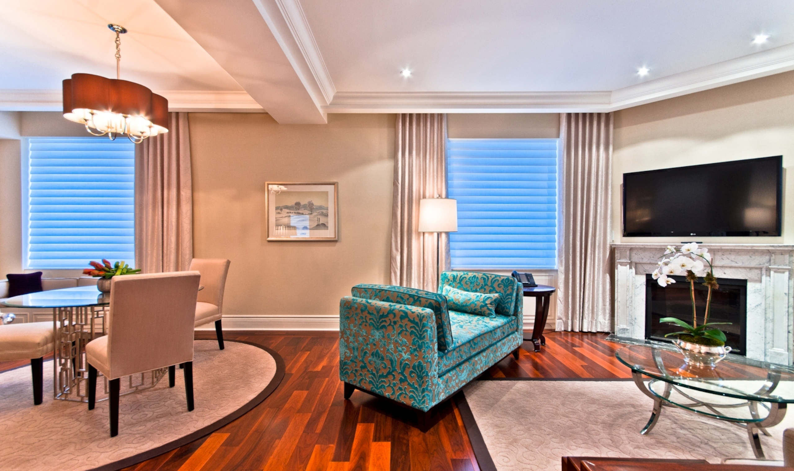 Rooms are bright and stylish, with a beautiful blend of contemporary and traditional decor, ranging from spacious deluxe and signature rooms to a variety of large suites, with hardwood floors and sitting areas.
