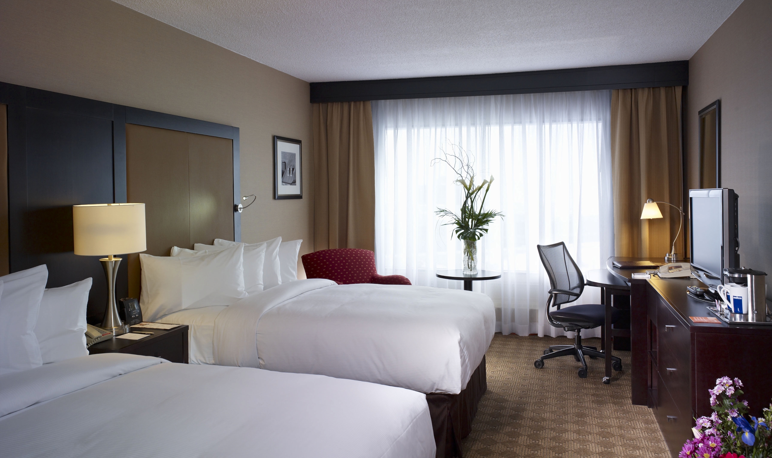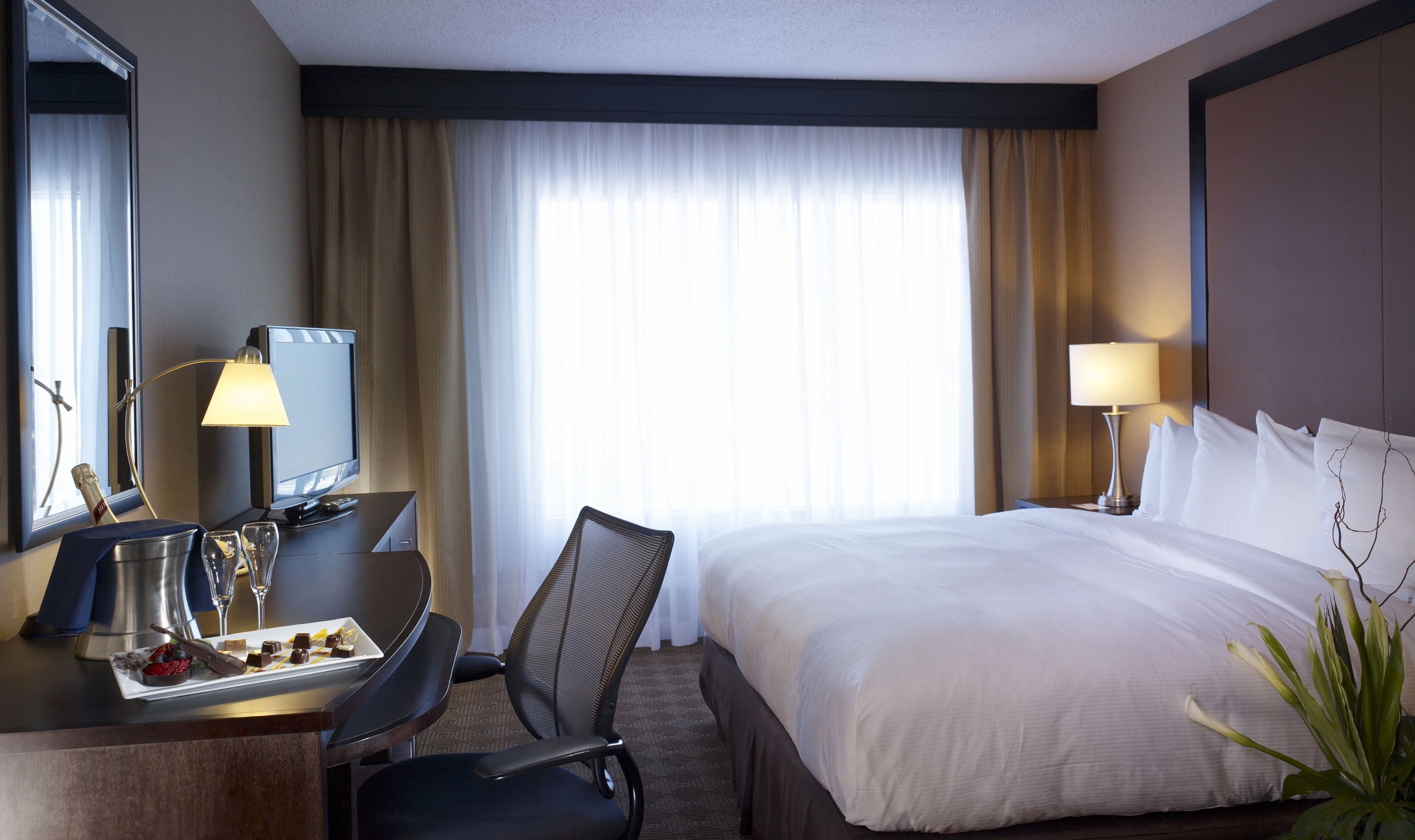 Rooms are contemporary and stylish, from the standard guest rooms to the corner rooms with fantastic dual-aspect views across the city and the St Lawrence River, and the range of spacious suites with large comfortable living areas.
